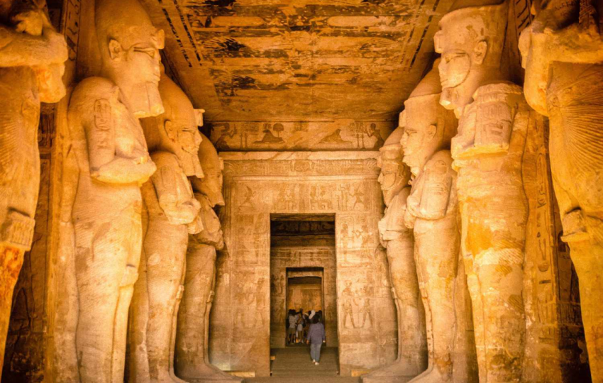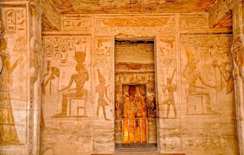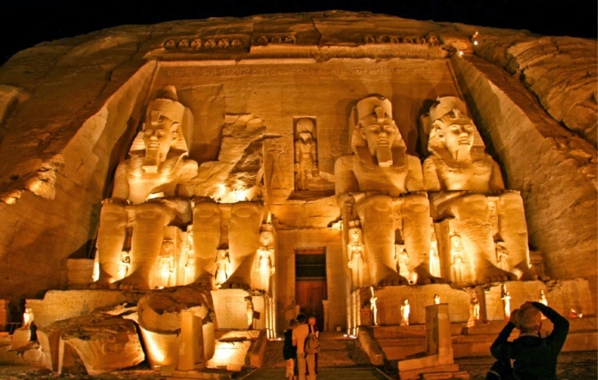 Standing proudly on the banks of Lake Nasser, the Abu Simbel Temples are masterpieces of ancient engineering and devotion. Carved directly into the mountainside, the Great Temple of Ramses II features four colossal statues guarding the entrance. At the same time, the smaller but equally stunning Temple of Queen Nefertari reflects love, power, and divine beauty. This site is also famous for the Sun Festival phenomenon, where sunlight illuminates the inner sanctuary twice a year.