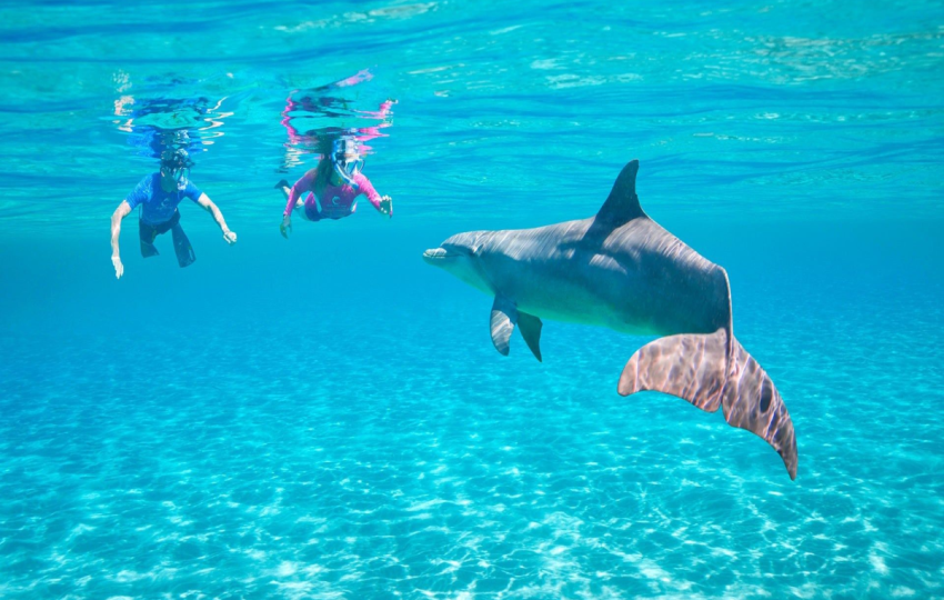 • Swim with playful dolphins in a safe, guided environment